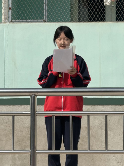 “从历史走向未来,我们从未忘记那些照亮征程的星火;从胜利走向复兴,我们永远铭记那些铸就辉煌的英雄。” 殷子优同学引用阅兵解说词,号召全体同学以英雄为榜样,将爱国情、强国志、报国行融入日常学习生活中,珍惜时光,锤炼本领,不负时代,不负韶华,在实现中华民族伟大复兴的新征程上,书写属于青年一代的崭新篇章。演讲情感真挚,振奋人心,赢得了全场师生的热烈掌声。
