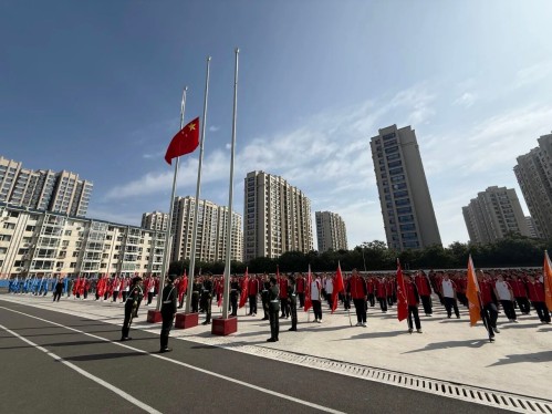 在全体师生的庄严注视下,升旗仪式正式开始。雄壮的国歌奏响,升旗手振臂扬旗,五星红旗在全场深情的注目礼中,迎着朝阳冉冉升起,点燃了每个人心中的爱国情怀。