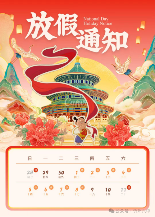 根据国务院办公厅《关于2025年部分节假日安排的通知》精神,现将学校2025年国庆、中秋双节放假安排及相关事宜通知如下: