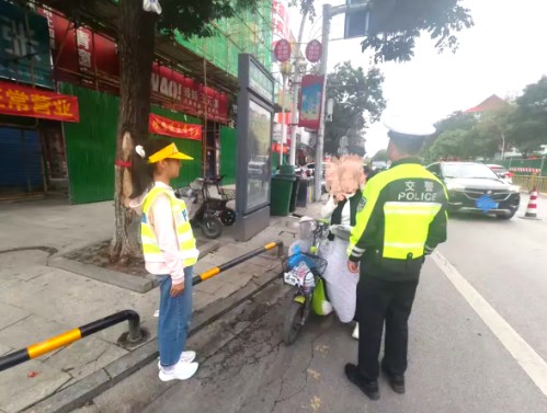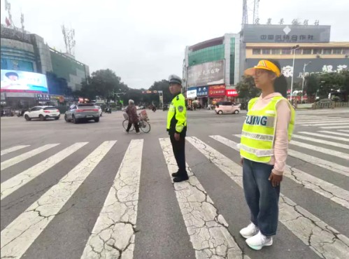 在执勤中,我还跟着交警叔叔一起,对骑行未戴头盔的市民进行安全宣讲,用无比真诚的话语,科普“头盔是生命防护盾”的道理。不少市民认真聆听,当即表示会重视交通安全。这一刻,我真切感受到:自己的小小行动,能传递大大的安全能量。