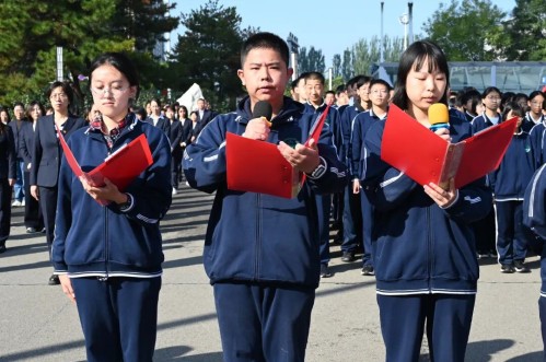 本次升旗仪式由高411班组织,任书捷同学主持,吕思睿、李晗霖同学作国旗下的演讲,师生列队参加。