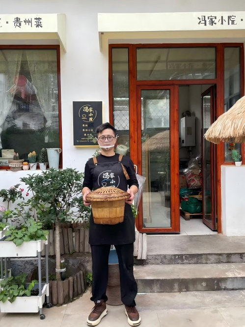 1993年出生的冯凯,于2010年怀揣报国理想参军入伍,成为贵州省消防总队一名消防战士。五载军旅生涯,淬炼了他坚韧不拔的意志,也为他牵起了一段美好姻缘——在服役期间,他结识了如今的妻子。退役后,冯凯带着对故乡的牵挂与对未来的憧憬,和妻子一同回到老家梁水镇镇。他的妻子擅长烹制地道贵州菜,夫妻二人萌生了将这份独特味道带回故乡的想法。经过反复商量和精心筹备,他们决定将自家的老庭院改造一新,开一家贵州风味餐馆。