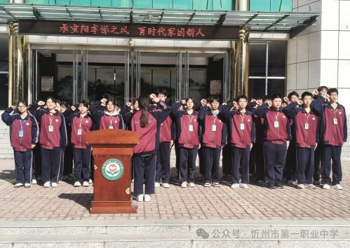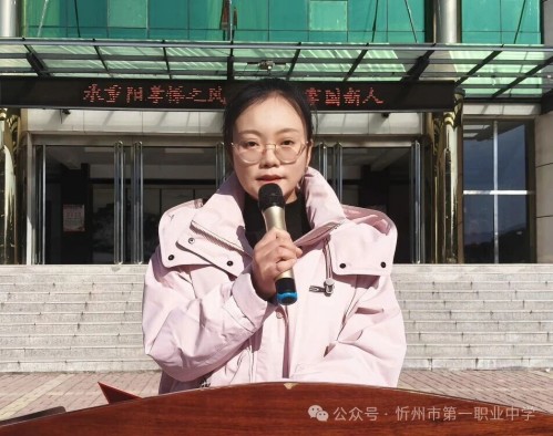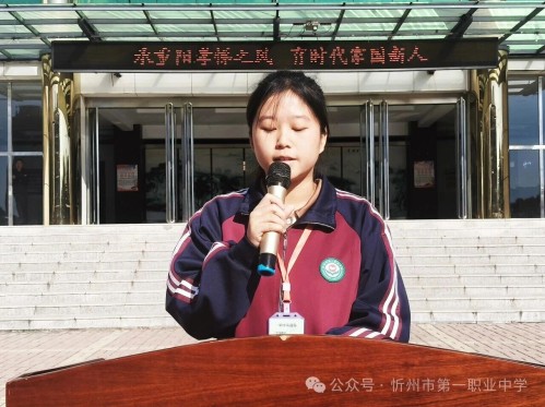 党支部副书记赵丹溪发表国旗下讲话。她指出,重阳节承载“登高望远、敬老思亲”的千年传统,是连接中华民族孝悌文化的精神纽带,而对中职学子而言,孝悌绝非空洞的道德说教,而是安身立命的根本与职业担当的精神根基。她谈到,孝可体现为放学回家为父母递杯热茶、耐心教长辈使用智能手机,悌可表现为实训课上帮同学递工具、团队合作中主动分担任务,这些细节正是职业人必备的责任意识、协作能力的起点。她以学校汽修专业毕业生开维修店撑起家庭、带动同学就业,家政服务与管理学子用专业知识护理老人收获赞誉为例,说明“学好一技之长,成为家庭依靠、社会栋梁”是中职学子对孝悌的时代诠释,同时呼吁师生将孝悌融入课堂听讲、实训操作、家庭生活,以技能支撑理想,成长为“技能过硬、品德高尚、心怀家国”的时代新人。