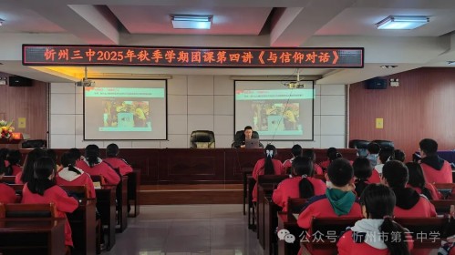 10月29日,忻州三中2025年秋季学期《与信仰对话》专题团课开讲,校团委书记焦秀峰老师担任主讲人,全校入团积极分子及团员代表参与了此次学习活动。