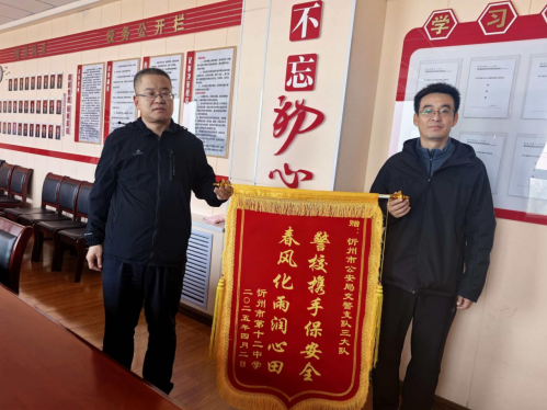 会后,学校将一面镌刻着“警校携手保平安,春风化雨润心田”字样的锦旗赠予交警三大队,以表达全校师生对交警三大队长期以来维护校园周边交通秩序、守护师生出行安全的诚挚谢意。展望未来,学校与交警队将继续深化合作,巩固并拓展警校共建机制,共同为营造更加安全、有序、文明的校园周边交通环境而努力,携手护航学子平安成长路。
