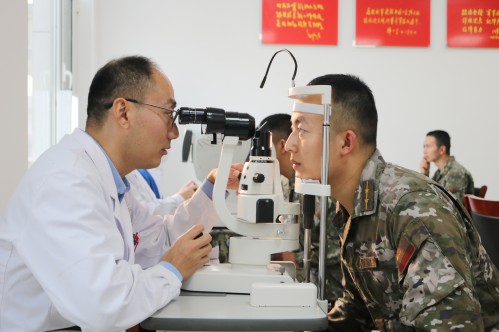 现场医院的专家首先为官兵们带来了一场内容丰富、贴近军营生活的护眼知识讲座。医生结合军事训练特点,详细讲解了干眼症、视疲劳等常见眼病的预防与治疗,重点传授了在特殊环境下如何有效防护眼部外伤、规避激光及强光伤害等实用知识,并分享了科学用眼与合理膳食对维护眼部健康的重要性,受到了官兵们的热烈欢迎。