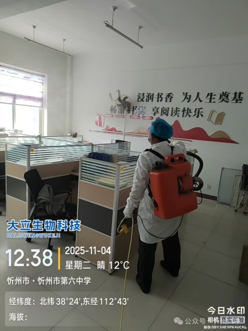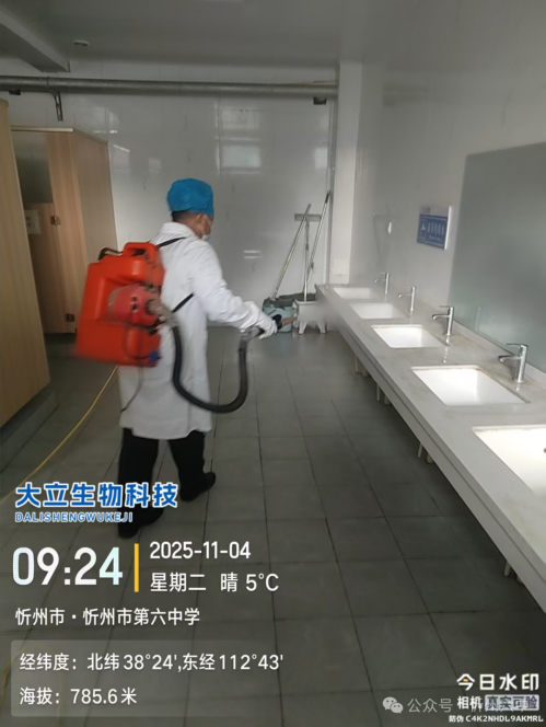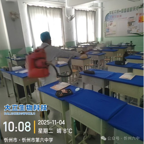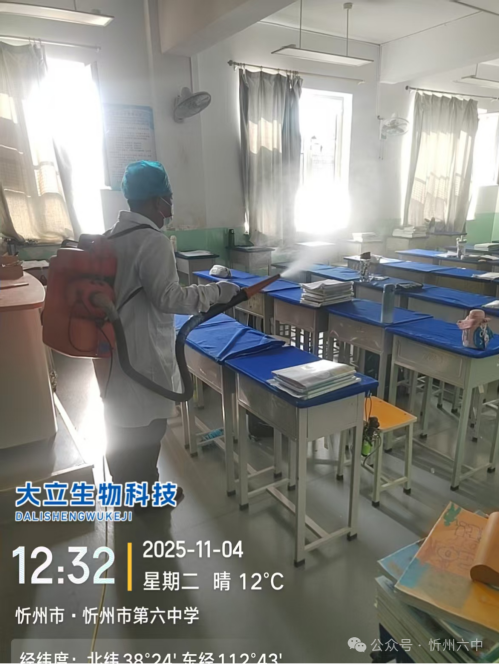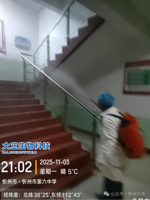 校园是师生朝夕相伴的家园,洁净环境是健康成长的基础。为筑牢秋冬季传染病预防防线,给师生打造安全安心的学习工作空间,11月3日-4日忻州市第六中学邀请专业消毒机构开展全方位校园消杀专项行动,聚焦关键场所精准作业,用细致举措守护校园每一处洁净。