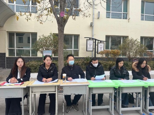 比赛伊始,领导们身着正装,精神抖擞地步入主席台就座,他们的到来为整场比赛增添了庄重感与仪式感。台下,各班级学子身着统一校服,身姿挺拔、斗志昂扬,眼神中满是期待与坚定,静静等候着展现班级风采的时刻。