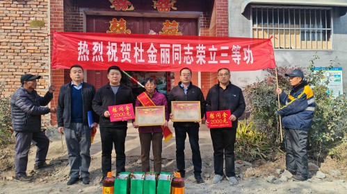 军营建功业,喜报传家乡。为进一步弘扬拥军优属光荣传统,营造“一人立功、全家光荣”的浓厚氛围。11月20日上午,东昌府区退役军人事务局联合沙镇镇人武部、退役军人服务站先后前往沙镇镇荣立三等功的龙恒坤、朱建虎、陈双乐、杜金丽家庭,为军人家属送上喜报和诚挚慰问,让尊崇之光映照军属家门。