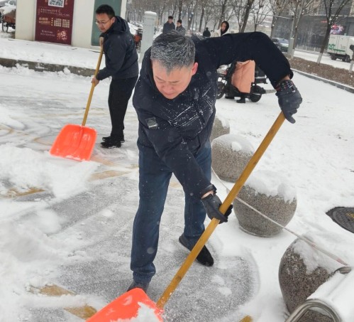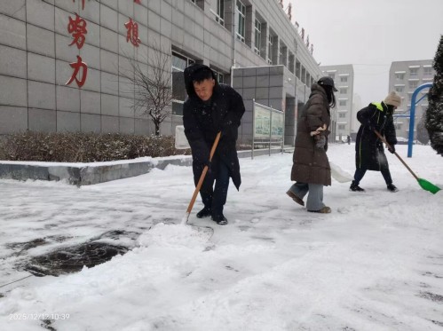 雪情来临前,学校已提前做好清雪预案,备足铁锹、扫帚等物资。清晨,校领导率先垂范,带领党员干部、教职工第一时间投入清雪行动。大家手持工具,重点围绕校园主干道、校门口、教学楼、餐厅、宿舍出入口等关键区域开展清扫。现场分工明确、配合默契,铲雪、清扫、搬运等工作有序进行。