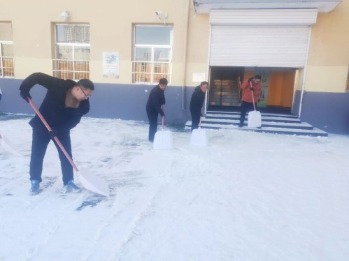 教育理念的生动践行。学校始终将校园安全、学生安全视为工作的重中之重,提前储备融雪剂、铁锹、扫帚等物资,确保在恶劣天气来临时能够快速反应、有效应对。在清理过程中,教师们格外注重细节,对教学楼出入口、厕所门口、操场边缘等学生高频活动区域进行重点清理,不放过任何一处潜在隐患,用实际行动为学生筑牢安全防线。