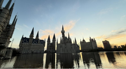 这张是河北美术学院标志性的城堡建筑群,临水而立的城堡在夕阳下泛着温柔的光,与传统书法的笔墨意境形成了奇妙的碰撞。很多人会好奇,充满欧式风情的校园与传统书法艺术如何相融?于我而言,这份反差恰恰让我更深刻地理解“包容”与“融合”的意义。书法艺术本身就是在不断吸收不同时代、不同文化的养分中发展的,就像校园里的建筑美学与书法的线条美学,虽形式不同,却都追求着视觉与精神的和谐。在这里,我既能在书法教室临帖到深夜,也能在校园的湖光山色中寻找创作的灵感,让自然之美融入笔墨之间。