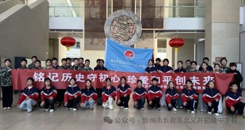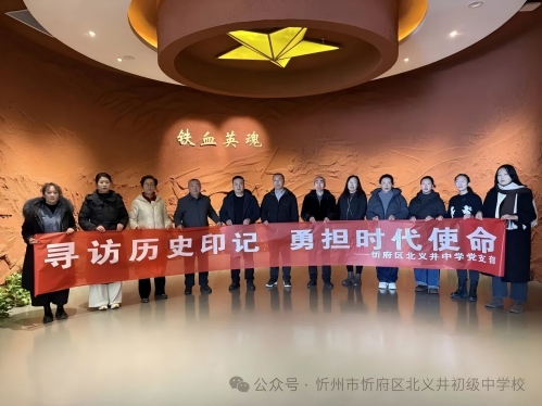 为推动党建工作与立德树人深度融合,厚植师生爱党爱国情怀,忻府区北义井中学党支部组织党员、青年教师及学生代表于2025年12月15日走进忻州市博物馆,开展“寻访历史印记