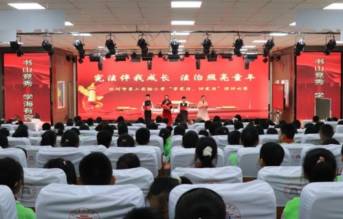 法治照亮童年”主题演讲比赛,4—6年级的16名优秀选手同台竞技,部分师生代表现场观摩。