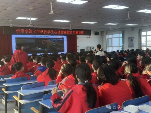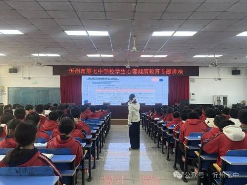 为贯彻落实教育部2025年10月颁发的《进一步加强中小学生心理健康工作十条措施》中“进一步加强中小学生心理健康工作”的文件精神,同时响应国家卫生健康委12月30日发布、联合13部门研究确定的《儿童青少年“五健”促进行动计划(2026-2030年)》中对心理健康工作的相关部署,近日,忻州市第七中学校举办“亲子沟通——和父母更亲近”主题心理健康讲座。忻府区副区长刘燕、区办公室副主任崔蕾莅临指导,忻州七中200余名师生共同参与。