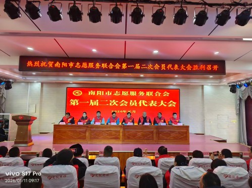 2026年1月11日,南阳市志愿服务联合总会第一届二次会员代表大会在南阳市第三十一小学会议大厅隆重召开。来自全市各县市区及市区各公益团队的会员代表齐聚一堂,共商我市志愿服务事业发展大计。