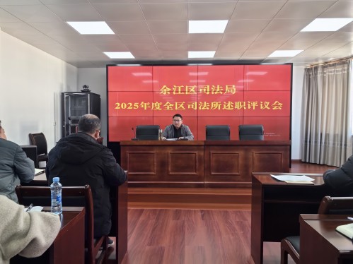 1月14日下午,鹰潭市余江区司法局召开2025年度司法所所长述职会议,全面总结工作成效、交流经验和改革创新做法、展现亮点特色、部署2026年重点任务。区司法局党组书记、局长刘意兵主持会议并讲话,局班子成员、各司法所所长及机关全体工作人员参会。