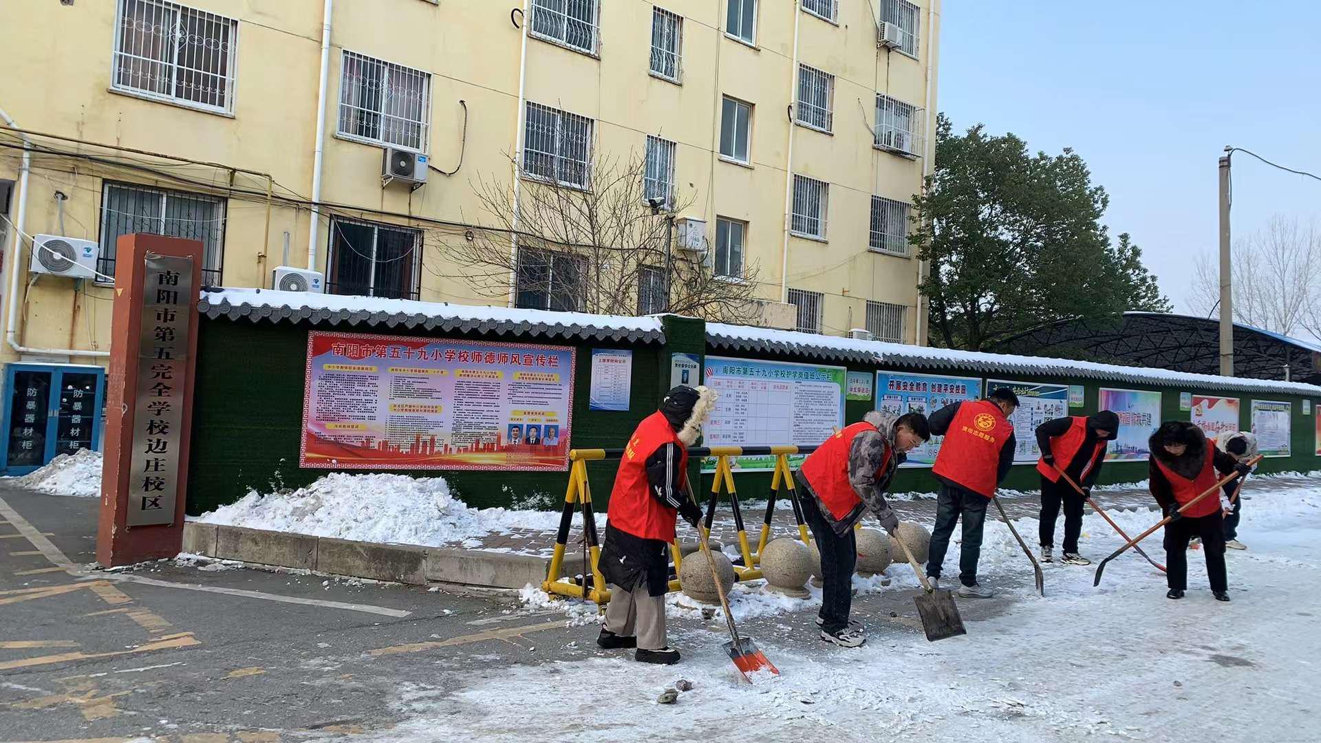 1月20日,卧龙区普降瑞雪,边庄村部分路段积雪结冰,给村民出行带来不便。卧龙区退役军人事务局迅速响应,组织党员干部前往联建的边庄村开展扫雪除冰行动。