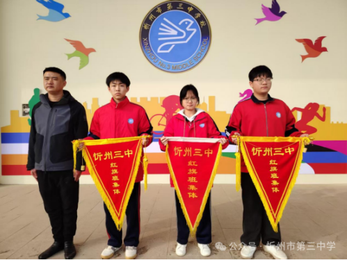 雪后的操场银装素裹,课间操时段的升旗仪式更显庄重。全体师生踏着薄雪列队整齐,共同见证荣耀时刻。经综合考评,325班(班主任:王秋霞)、313班(班主任:朱平)、310班(班主任:刘璐)凭借优异的班级风貌、严格的纪律管理和突出的综合表现,荣获本期“红旗班级体”称号。校领导为获奖班级代表颁发荣誉锦旗,鲜红的旗帜在皑皑白雪映衬下熠熠生辉,这是对各班师生同心协力的肯定,更是对全校学子的鼓舞与鞭策。