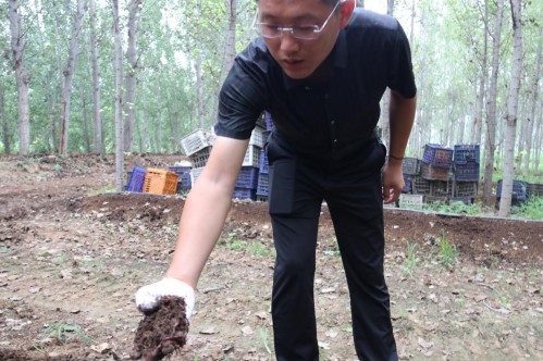 蚯蚓培养床主要用料为牛粪,还解决了附近养牛场牛粪不好处理的问题。牛粪中的养料既能为蚯蚓所用,又能为树木生长提供养料,实现了一举两得。林下蚯蚓养殖,不仅净化了环境,实现了废弃物再利用,还破解了林业经济周期长的弊端。
