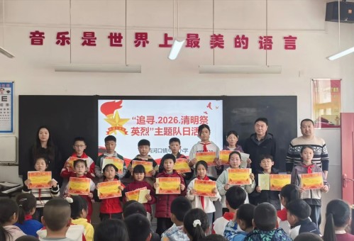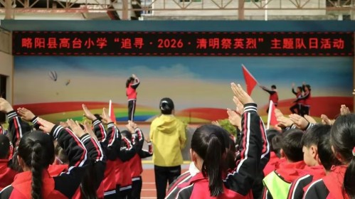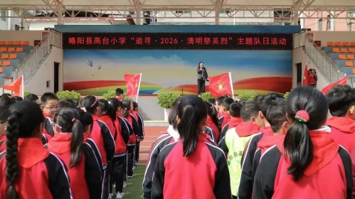 略阳县高台小学“追寻•2026•清明祭英烈”主题队日活动在经典诗文朗诵中拉开帷幕,从《清明》到《少年中国说》,队员们在诵读中感悟文化底蕴、厚植家国情怀。
