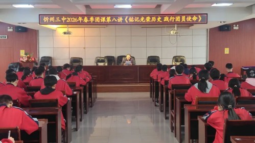 践行团员使命”的共青团团史与团务知识专题团课在忻州三中日新楼会议室举行。本次团课由忻州三中第二党支部书记张文东老师主讲,旨在引导青年学子从百年团史中汲取力量,明确责任,以实际行动书写新时代的青春篇章。